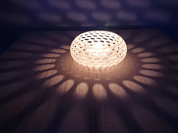 Odanızın atmosferini tek bir dokunuşla değiştirin! Özel parametrik (hücresel) tasarımı sayesinde bu dekoratif küre, ışığı hapsedip duvarlarınıza büyüleyici desenler yansıtarak görsel bir şölen sunar. Karanlık çöktüğünde odanızın duvarlarında adeta dans eden gölgeler oluşturan bu ürün, romantik akşam yemekleri, film geceleri veya meditasyon seansları için mükemmel bir tamamlayıcıdır. Modern ve minimal yapısıyla gündüzleri şık bir dekoratif obje, geceleri ise huzur veren bir ışık kaynağıdır. Güvenli Işık Kaynağı: Ürün, 3D baskı (PLA) malzemeden üretildiği için pilli LED mum (tea light) ile kullanılmak üzere tasarlanmıştır. Gerçek ateşin aksine, pilli mum hem güvenlidir (ısınma/erime yapmaz) hem de titrek ışık moduyla gerçek mum efektini aratmaz. "Uyarı: Bu ürün plastik bazlı (PLA) malzemeden üretilmiştir. Lütfen erime ve deformasyon riskine karşı içine gerçek ateşli mum koymayınız. Sadece pilli LED mum veya LED ışık kaynakları ile kullanıma uygundur."